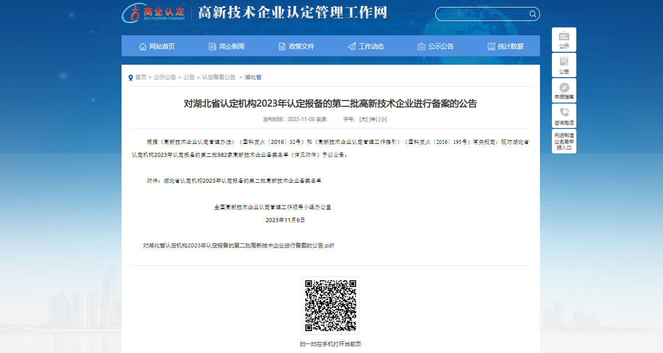 在這個科技日新月異的時代,創(chuàng)新已經(jīng)成為推動社會進步的重要動力。近日,根據(jù)《高新技術(shù)企業(yè)認定管理辦法》(國科發(fā)火〔2016〕32號)和《高新技術(shù)企業(yè)認定管理工作指引》(國科發(fā)火〔2016〕195號)有關(guān)規(guī)定,對湖北省認定機構(gòu)2023年認定報備的第二批982家高新技術(shù)企業(yè)備案名單(詳見附件)予以公告。新銳科創(chuàng)(湖北)科技有限公司喜獲佳音,成功通過2023年高新技術(shù)企業(yè)備案。