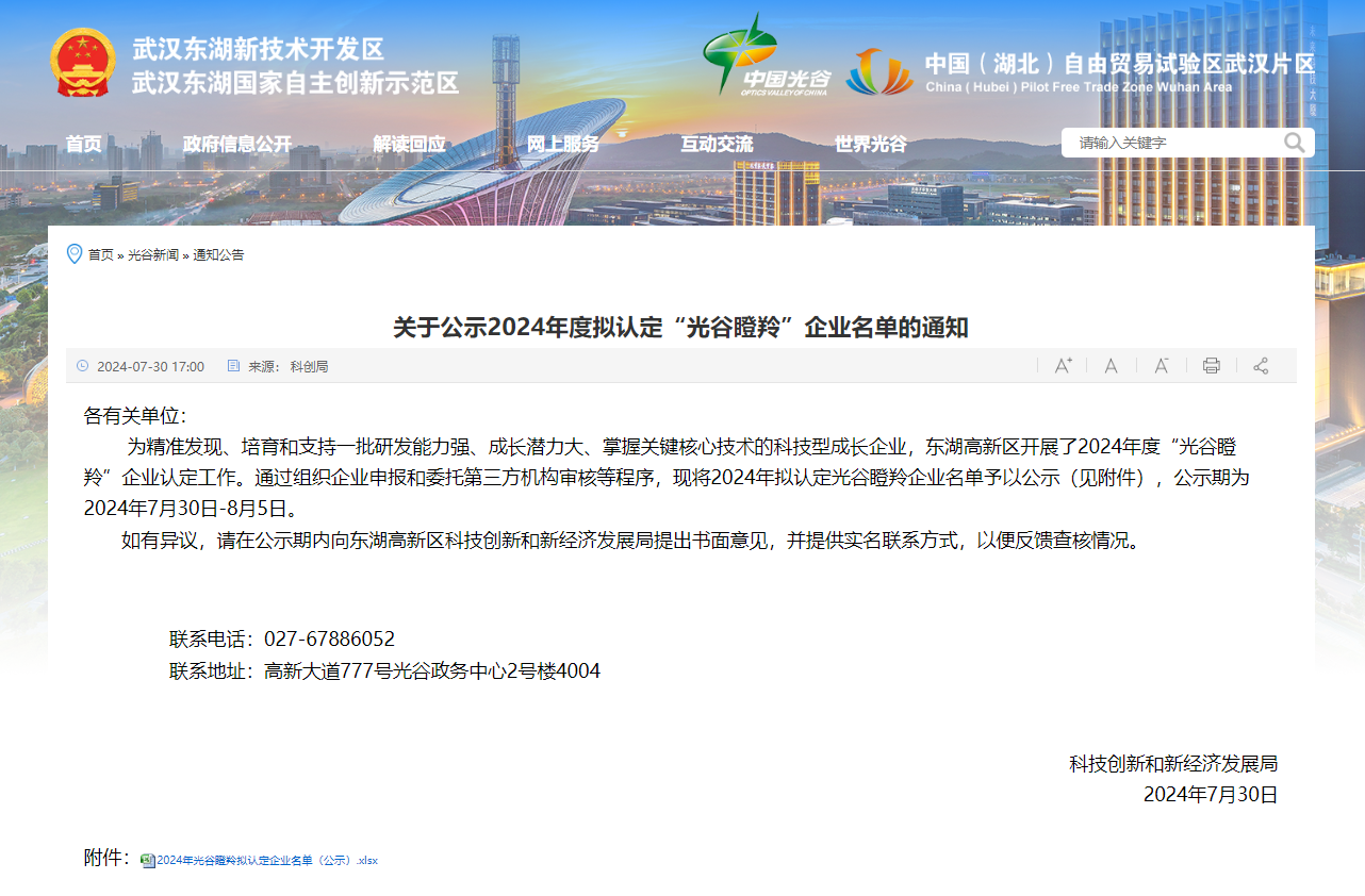 武漢東湖新技術開發區科技創新和新經濟發展局于7月30日公示了2024年度擬認定“光谷瞪羚”企業名單。此次,新銳科創公司憑借其在高新技術領域的卓越表現和快速成長成功入選,展現了公司強大的創新能力和發展潛力。