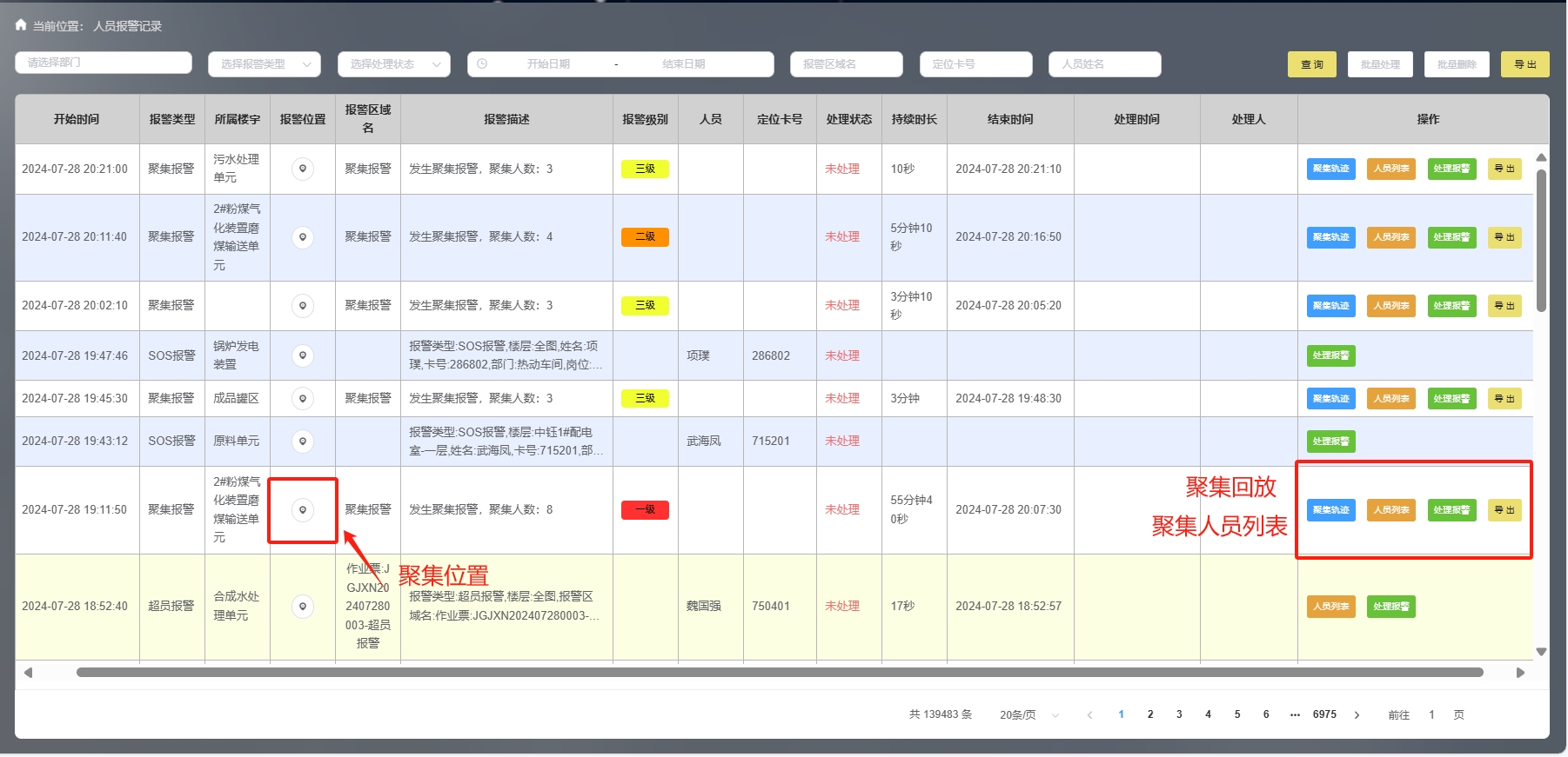 在危險區域(如儲罐區、反應釜區)設置電子圍欄,當人員未經授權進入或超時停留時,系統立即通知管理人員進行處理。同時,系統支持超員、缺員、脫崗、串崗等異常行為監測,確保人員行為合規。