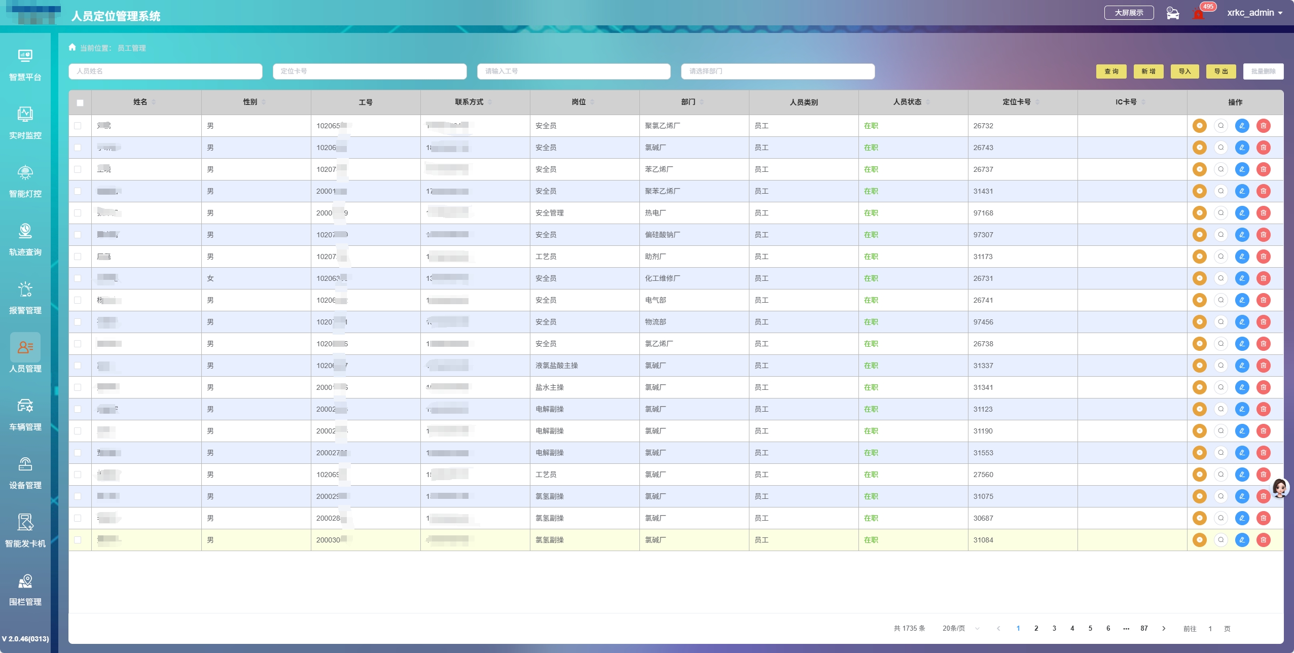 借助管理平臺,農藥廠的管理人員能在廠區電子地圖上,實時、精準地追蹤每位作業人員的位置。不管是在繁忙的生產車間,還是在開闊的室外存儲區,人員的位置變化都能清晰可見。這有助于管理人員及時掌握人員分布狀況,合理調配人力,提升生產效率。