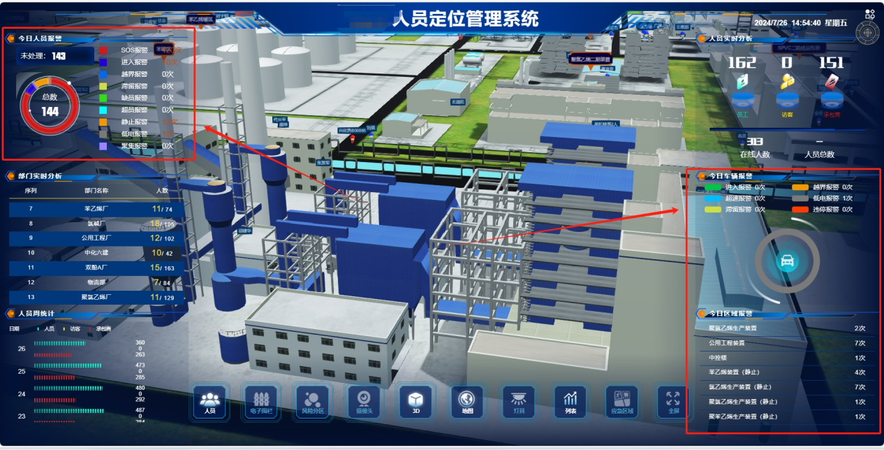 系統提供全面的數據報表和可視化工具,以表格、熱力圖等形式展示各區域人員分布及報警信息等關鍵數據。