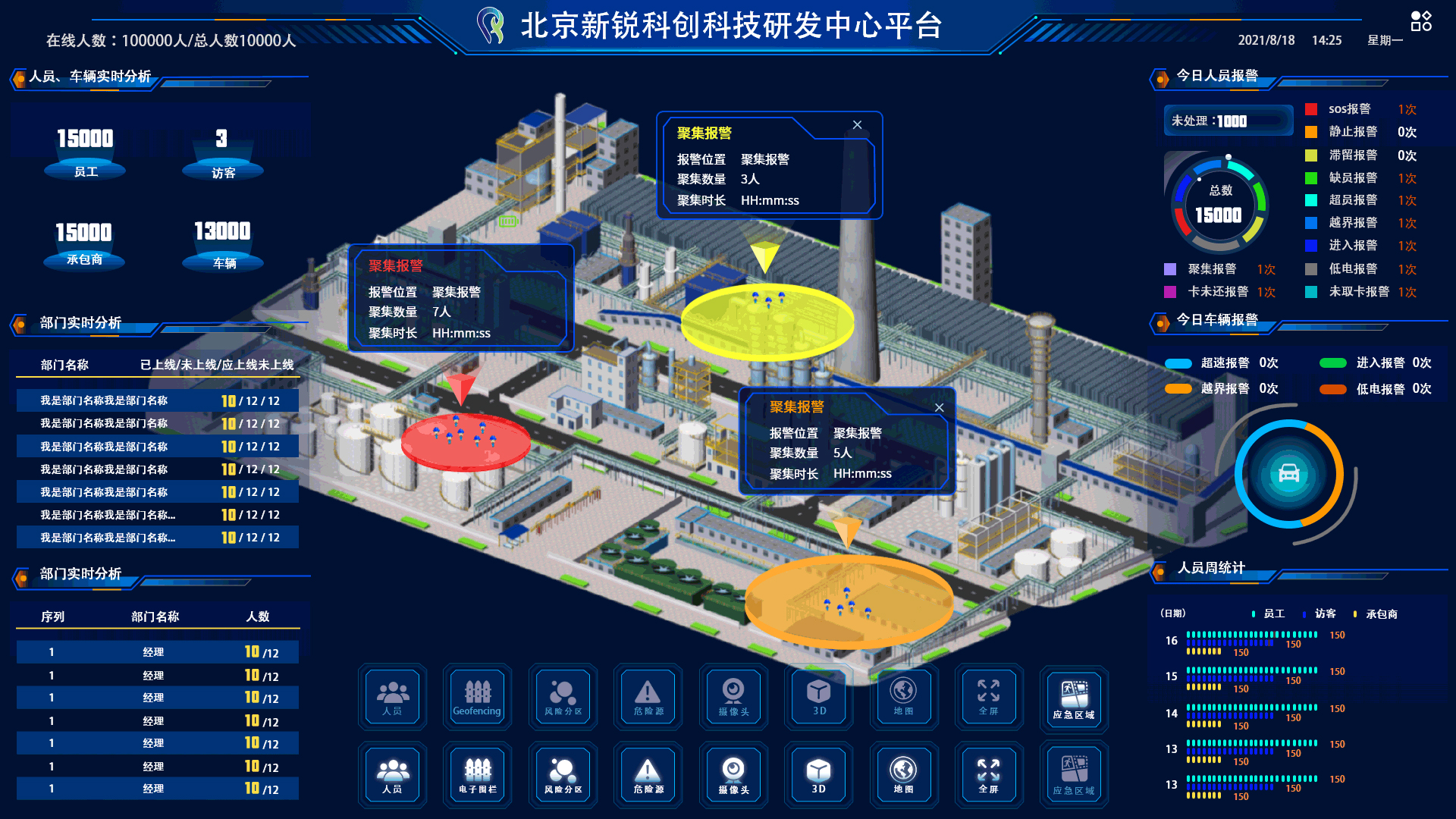 大數據分析,系統能自動識別超員、缺員、脫崗、串崗、越界、滯留、靜止等異常行為,并啟動預警機制,通知相關人員并啟動應急處理流程。