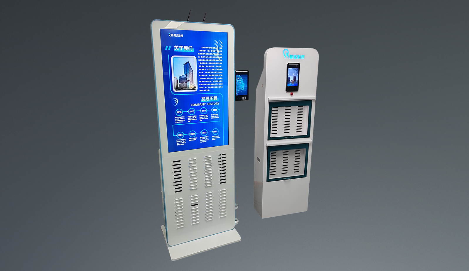 集人臉識別、發(fā)卡、考勤打卡、身份綁定、集中充電等功能于一體的智能發(fā)卡機(jī)充電柜。